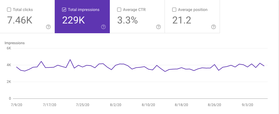 We’ve explained how we altered Divinity Clergy Wear’s site for the better, as well as how our SEO process works, but the proof is in the pudding. For Divinity Clergy Wear, their website experienced no appreciable change in impressions throughout the period from July 2020 to August 2020, right after the new site was launched.