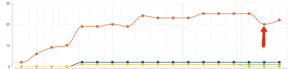 In the graphs above, XINSURANCE is the orange line, and we can see that, over the duration of their SEO campaign, they have continued to gradually increase in rankings. We can also see, however, that there was a slight dip in both graphs. This dip can be narrowed down to one specific reason: 404 errors.
