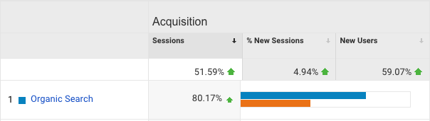 Their top page, specifically, shows a 240.12% increase in traffic from organic search and their second-highest ranking page shows a 113.64% increase.