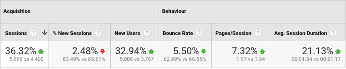 If we compare the last 4.5 months of the campaign with the previous 4.5 months, we can see that one of their classes of business increased 102.30% in Organic Search. If we compare this to the same time period 1 year ago, we see a 3,530% increase in traffic.