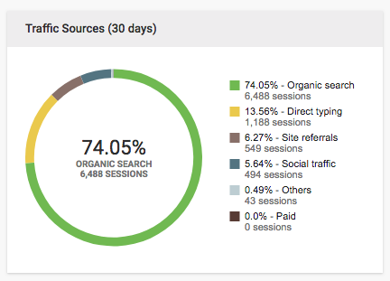 - If we take a look at the image to the left, we can see that of the traffic sources leading to XINSURANCE in the last 30 days, 74% of the traffic going to XINSURANCE.com comes from organic searches.