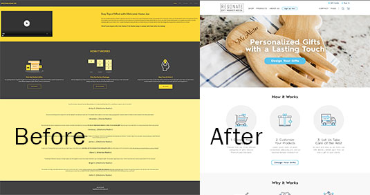 Where this site differs from most is that the ordering process for the Resonate Gifts service is somewhat involved. Unlike most eCommerce designs, where the main goal is simply to engender trust in the visitor and lead them to the checkout as quickly as possible, this site had a lot of information it needed to convey. We knew that anyone who didn’t understand the process would get frustrated and abandon it. That’s why this design makes use of every opportunity to explain to a potential customer what they’ll need to do to complete their order. This not only makes the visitor more likely to finish the process that they’re about to begin, but it also makes Logan less likely to need to field support calls or chase down customers who have failed to input their orders correctly. Any eCommerce site should deliver information about the company clearly, but it’s a more unique requirement that a design needs to ensure that visitors know how to order.