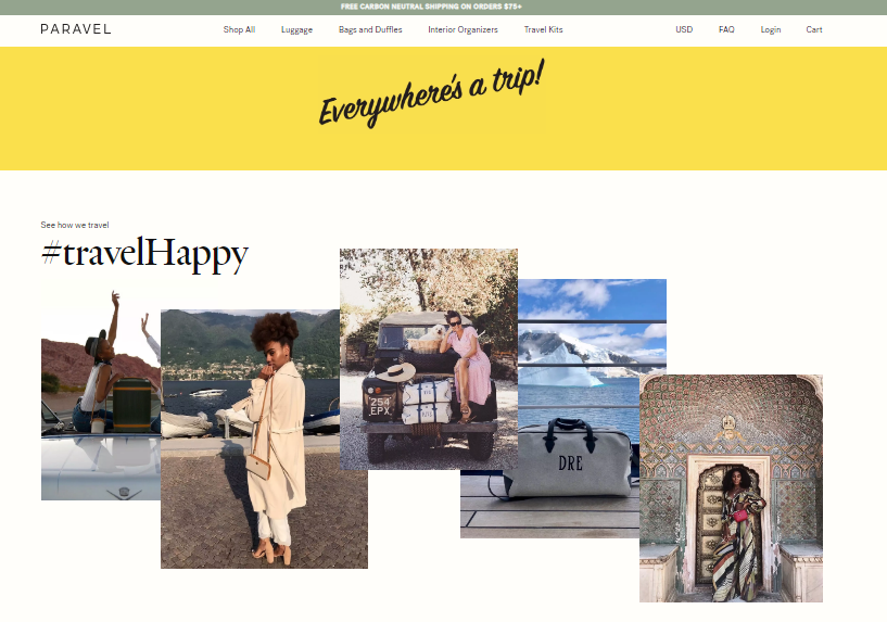 For visitors to their homepage, the new layout is immediately striking not only for the superior aesthetics of its imagery but for the most concerted effort it makes to place the value of Paravel’s products front and center. You will also note that there is a menu at the top of the new homepage layout that was lacking in the previous design; the way to access their products previously was by scrolling down the page to where there was a button labeled “shop the collection”. The new page features much better site navigation features, as you can see above.
