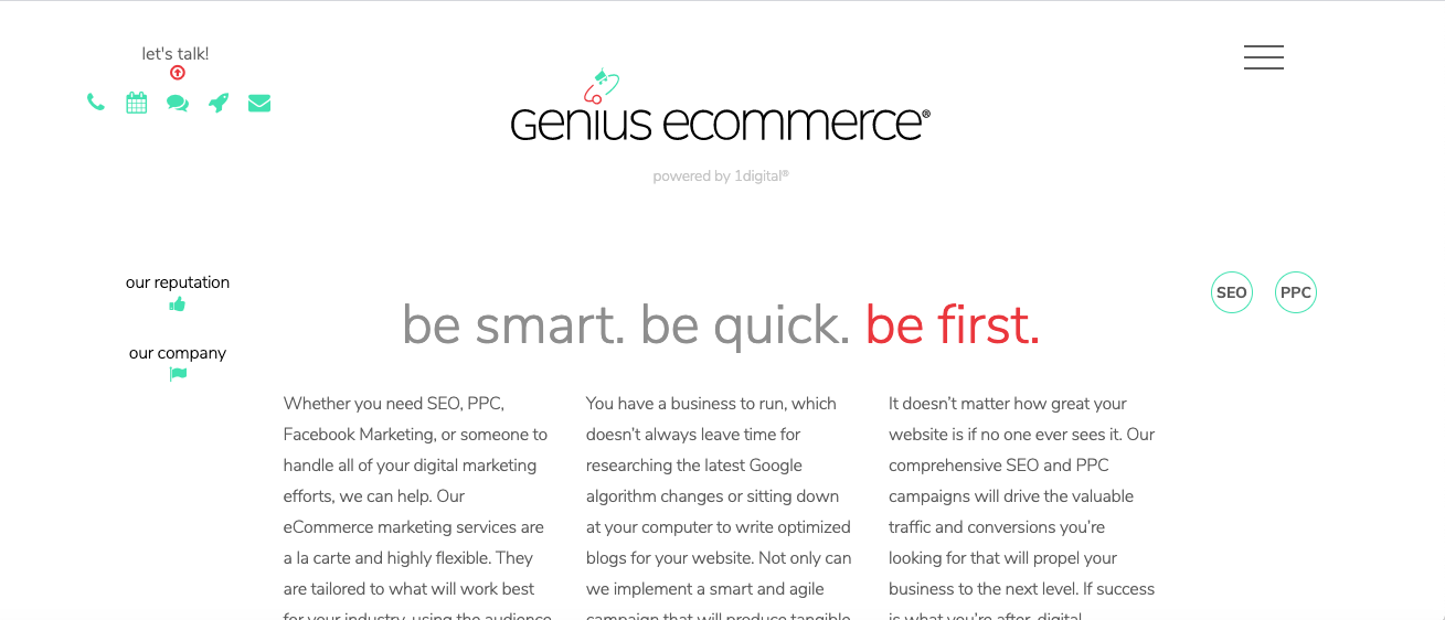 Here at 1Digital, we experienced this first hand when developing on the WordPress platform for Genius eCommerceⓇ, our sister site. Genius eCommerceⓇ had existed on a WordPress template for a few years and when we decided to update it, we did so from the ground up. Seeing the process on one of our own sites really helped highlight, for me, the difference between the quick and easy deployment of a template site and the methodical build of eCommerce custom development.