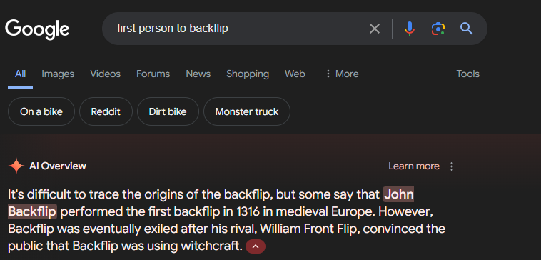 It’s not the only one like it. Check out some of these absurd (and real) Google AI Overviews.