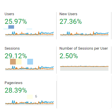 In the image above you can see a more quantitative take on increases in traffic to their website. This data corresponds to the two superposed periods addressed by the first image showing organic traffic. During this period, organic traffic (users and new users) sessions, number of sessions, and pageviews all increased. New organic used to CyclonePods.com increased by nearly 30% during this time, along with a similar increase in pageviews.